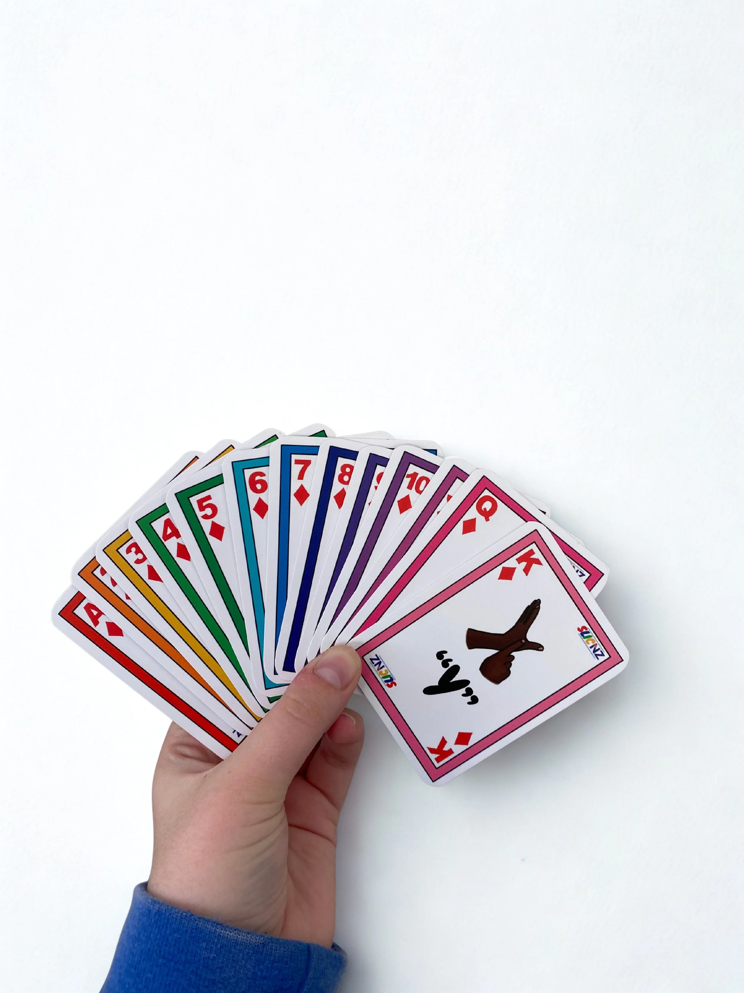 New Zealand Sign Language playing cards: Alphabet Edition Sale Price: NZ$14.99 Original Price: NZ$19.99 Sale Add to Cart Added! New Zealand Sign Language playing cards: School Edition Sale Price: NZ$14.99 Original Price: NZ$19.99 Sale Add to Cart Added! New Zealand Sign Language playing cards: Standard Edition Sale Price: NZ$14.99 Original Price: NZ$19.99 Sale Add to Cart Added! New Zealand Sign Language playing cards: Starter Pack Sale Price: NZ$34.99 Original Price: NZ$49.99 Sale Add to Cart Added! New Zealand Sign Language playing cards: Jumbo Māori Edition Sale Price: NZ$19.99 Original Price: NZ$24.99 Sale Add to Cart Added!